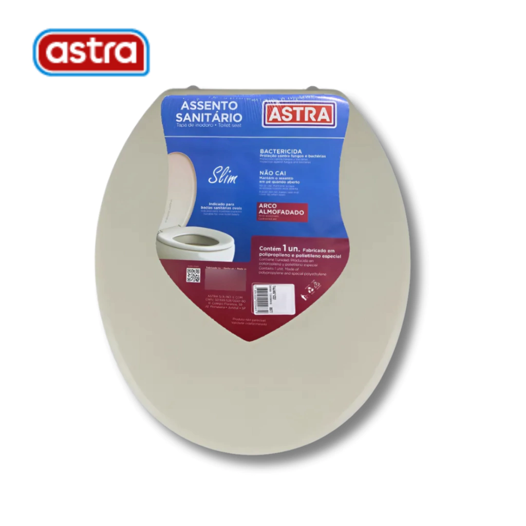 O Assento Almofadado da Astra é comprovadamente o mais confortável do Brasil, pois possui uma espuma mais espessa e macia. Possui a maior variação de cores do mercado, com aproximadamente 40 tonalidades, desde as mais tradicionais (fiéis às cores dos vasos sanitários) até as mais modernas e exclusivas (metálicas e marmorizadas), que resultam em uma perfeita composição do ambiente. Compatível com os vasos sanitários ovais.